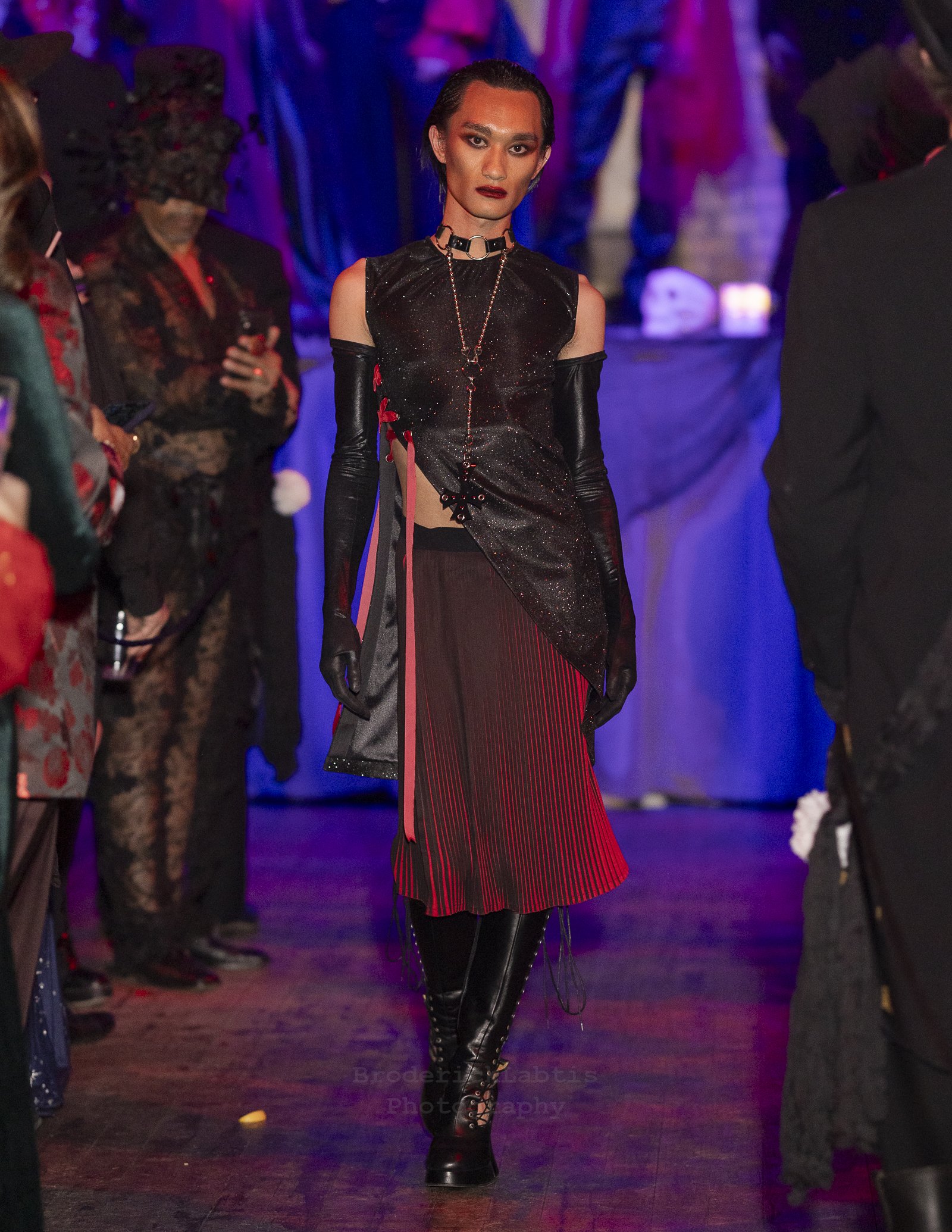 Make heads roll in this color-changing skirt as you sashay away. The “underside” of the pleating is red, so as one walks, and the skirt shifts, the red will become more visible, creating a stunning illusion. The skirt will fit a 26-27.5” waist.